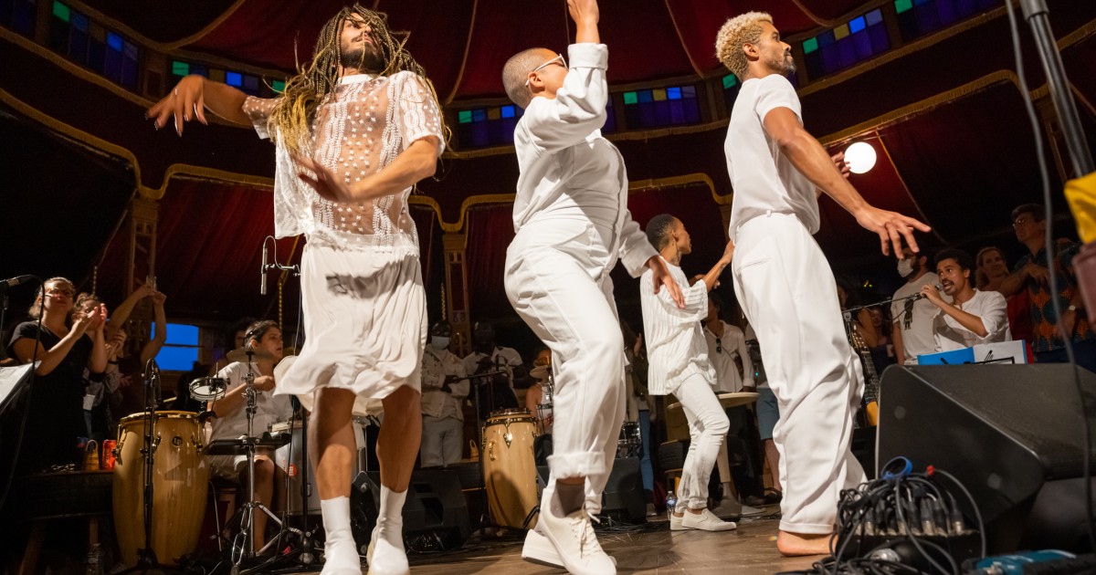 Originaire de Recife au Brésil et installé en France depuis 2013, le danseur et chorégraphe Calixto Neto a été membre de la compagnie de Lia Rodrigues (2007-2013) et interprète dans les créations de Volmir Cordeiro, Anne Collod, Mette Ingvartsen ou Luiz de Abreu dont il reprend le célèbre solo O Samba do crioulo doido. Artiste reconnu à l’échelle internationale, il est accueilli pour la première fois à Points communs dans le cadre du Festival Arts & Humanités 2023 avec sa pièce « choré-gastronomique » Feijoada (2021) ; puis en 2024 il y présente son solo IL FAUX, créé en 2023 au Kunstenfestivaldesarts (Bruxelles). Calixto Neto développe aujourd’hui une recherche autour de l’œuvre du musicien Julius Eastman, sujet central de sa nouvelle pièce de groupe : Bruits Marrons, créée à Points communs en octobre 2025.